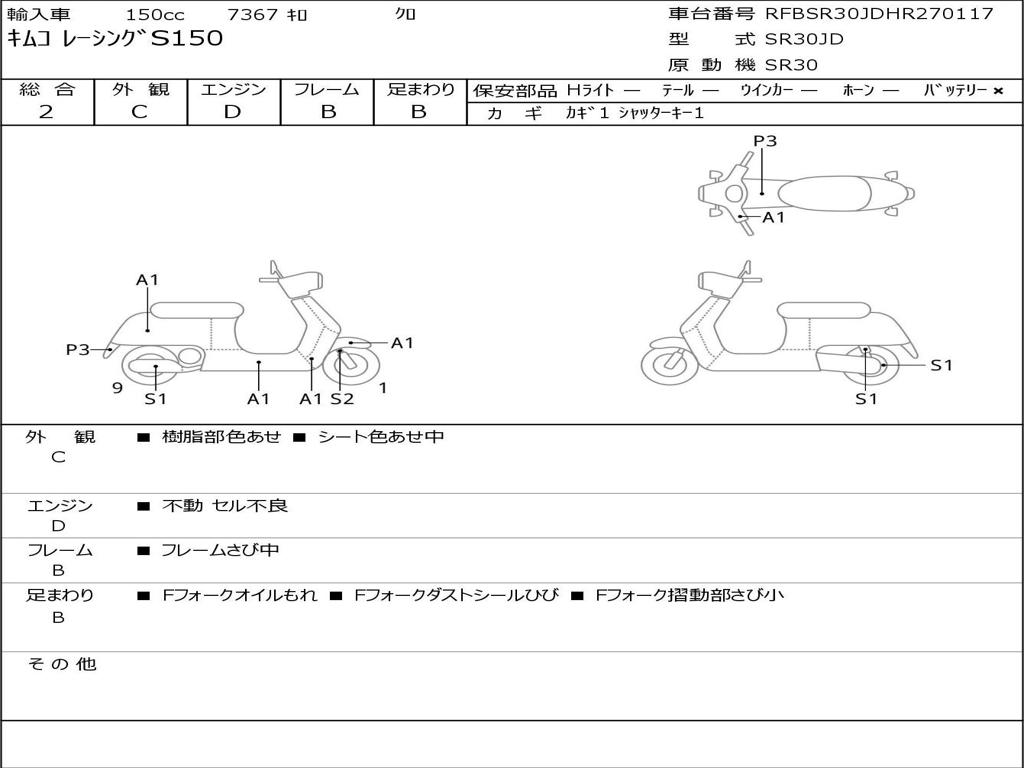 | Номер рамы / VIN | RFBSR30JDHR270117 |