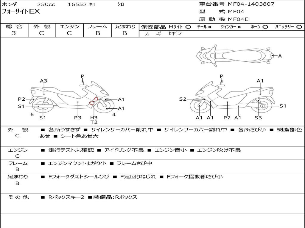 | Номер рамы / VIN | MF04-1403807 |