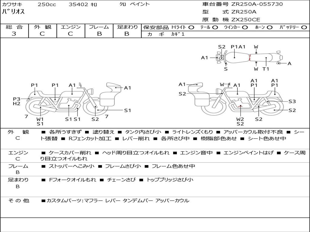 | Номер рамы / VIN | ZR250A-055730 |
