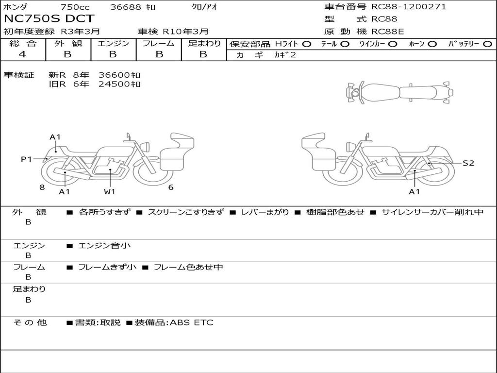 | Номер рамы / VIN | RC88-1200271 |