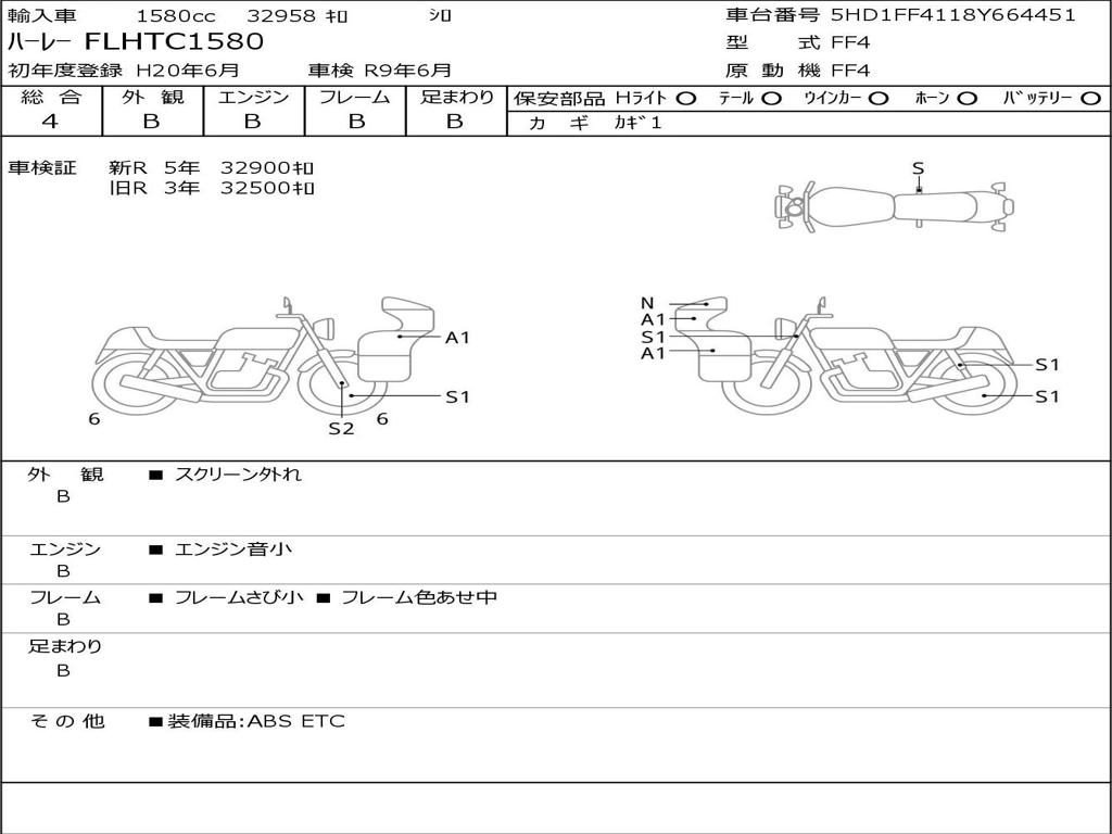 | Номер рамы / VIN | 5HD1FF4118Y664451 |