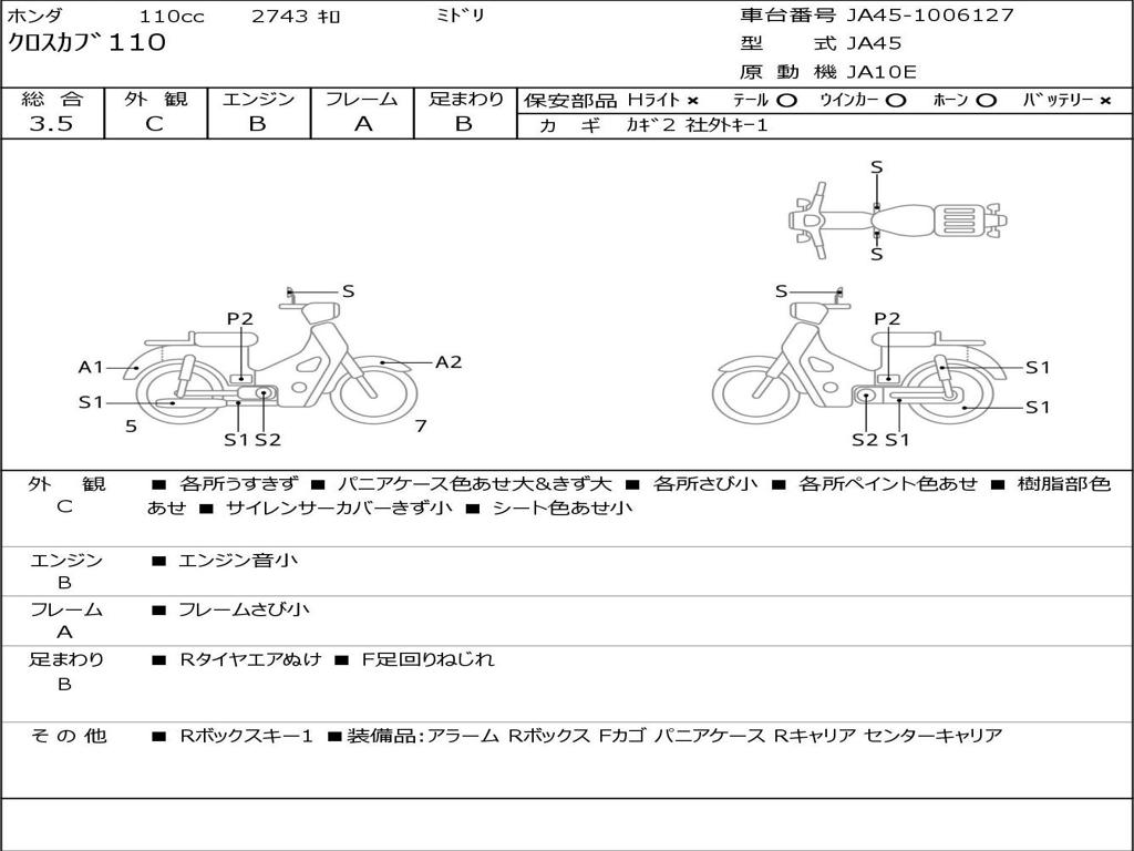 | Номер рамы / VIN | JA45-1006127 |