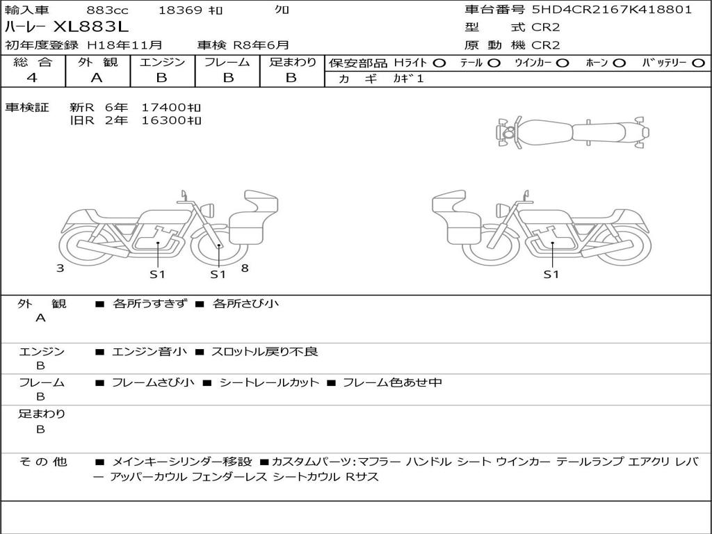 | Номер рамы / VIN | 5HD4CR2167K418801 |