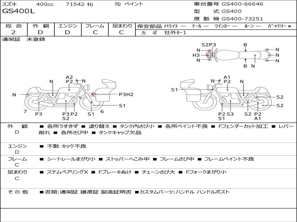 | Номер рамы / VIN | GS400-66646 |