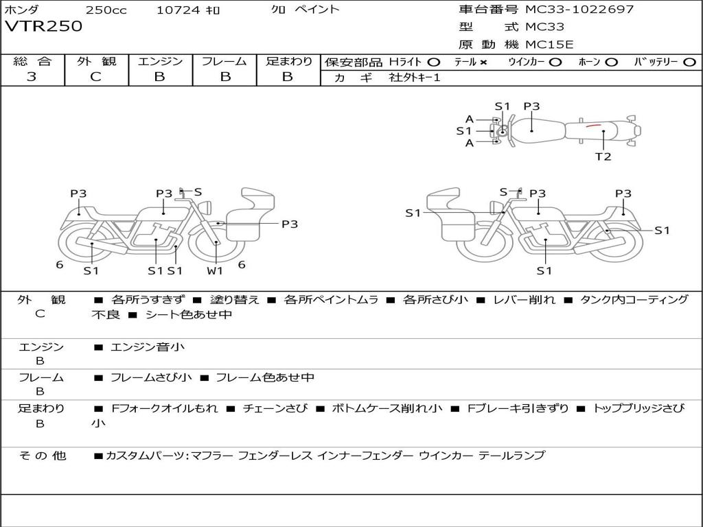 | Номер рамы / VIN | MC33-1022697 |