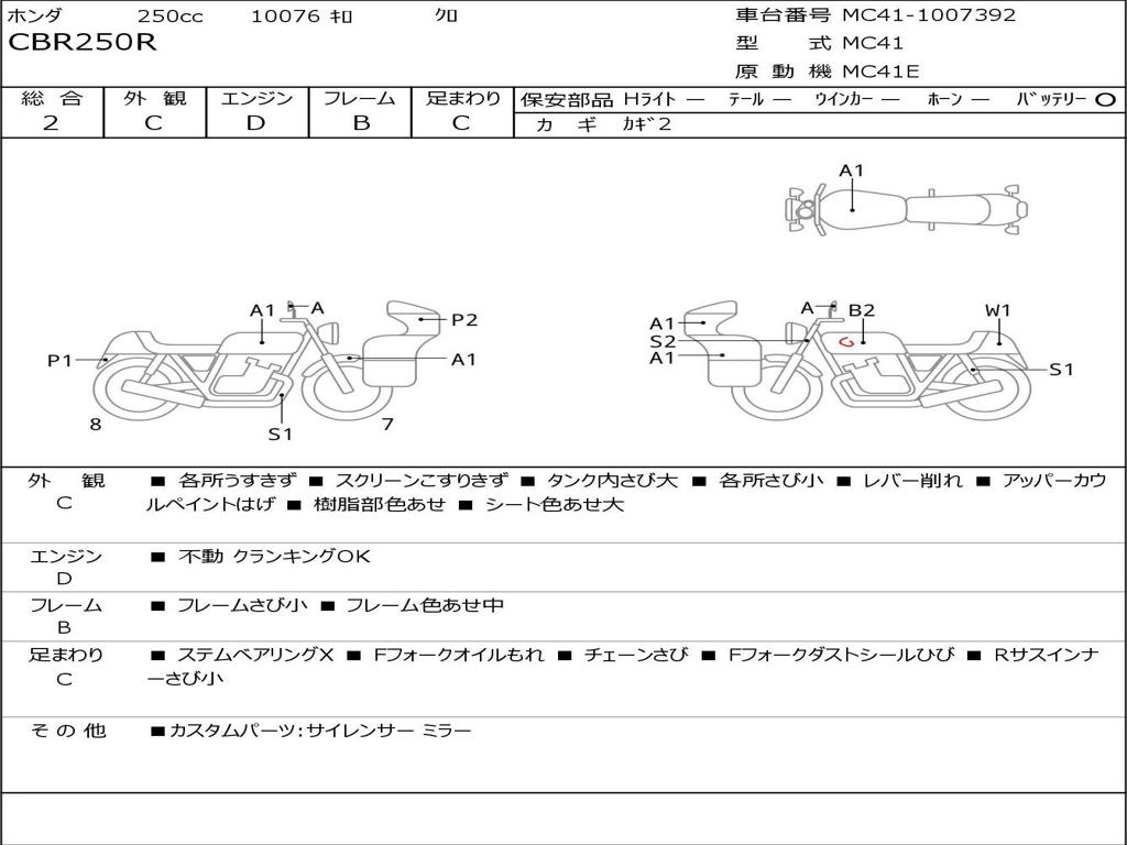 | Номер рамы / VIN | MC41-1007392 |