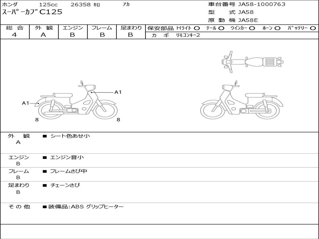 | Номер рамы / VIN | JA58-1000763 |