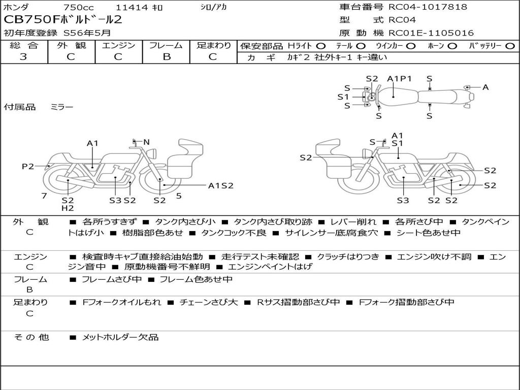 | Номер рамы / VIN | RC04-1017818 |