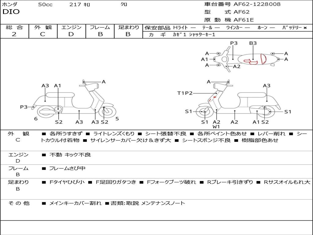 | Номер рамы / VIN | AF62-1228008 |