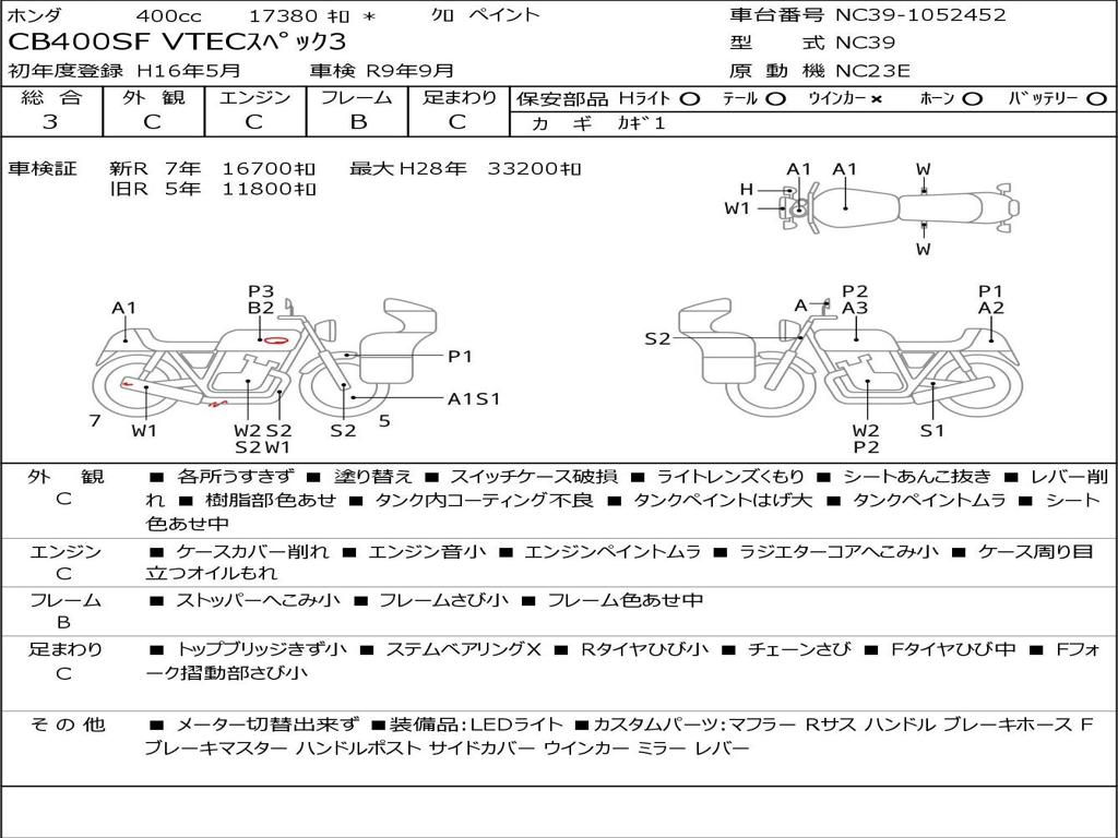 | Номер рамы / VIN | NC39-1052452 |