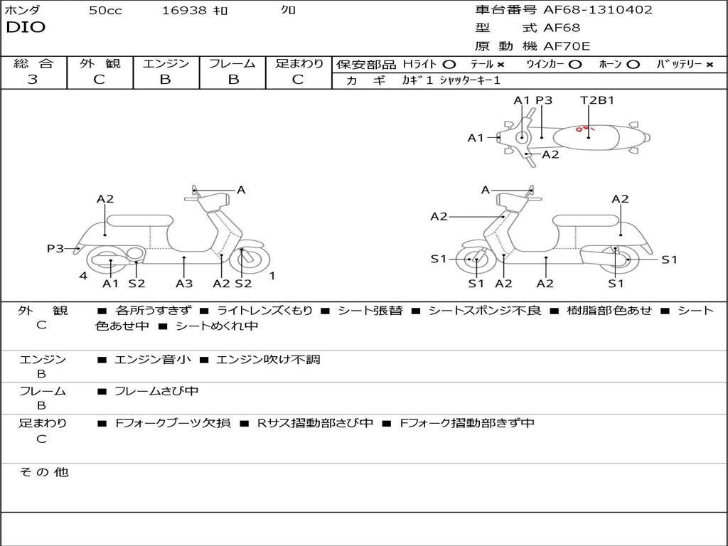 | Номер рамы / VIN | AF68-1310402 |