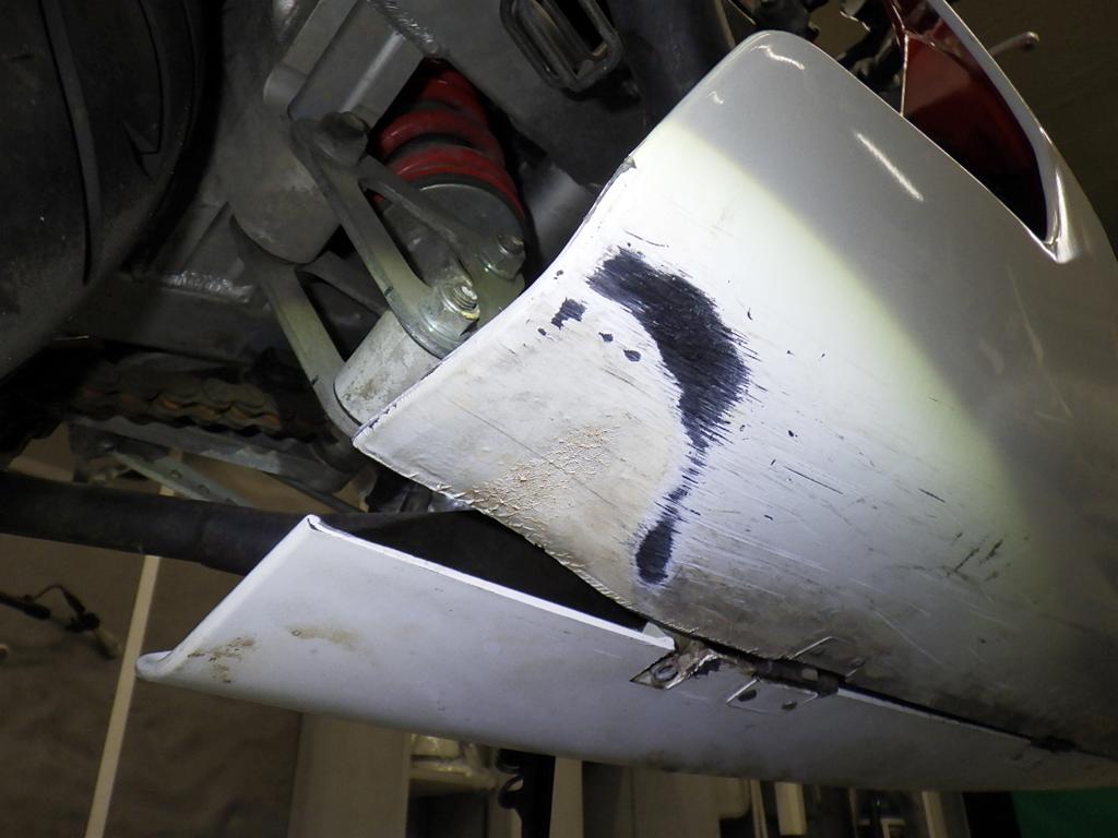| снизу | царапины <много>, деформация <много>, частичная подкраска, дырка, расплавлено |