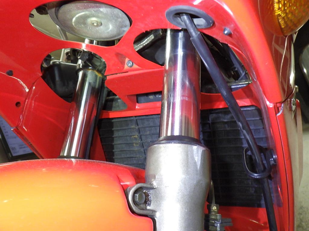 | внешняя часть вилки | царапины, следы коррозии, потек масла, слабый |