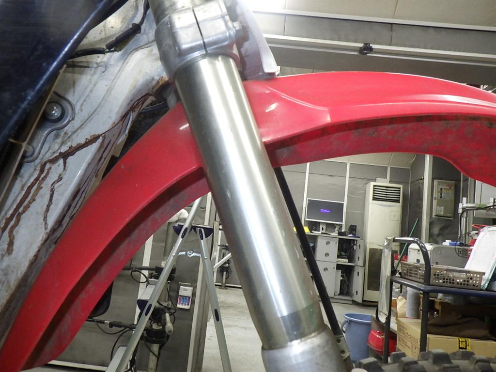 | внешняя часть вилки | потек масла <много>, ухудшение, трещины <много> |