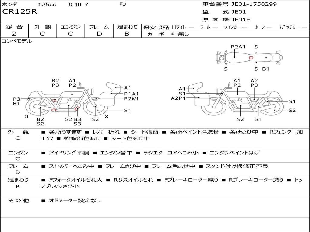 | Номер рамы / VIN | JE01-1750299 |