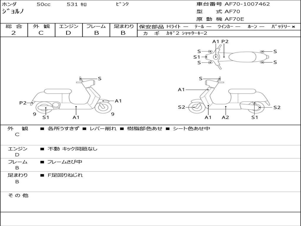 | Номер рамы / VIN | AF70-1007462 |