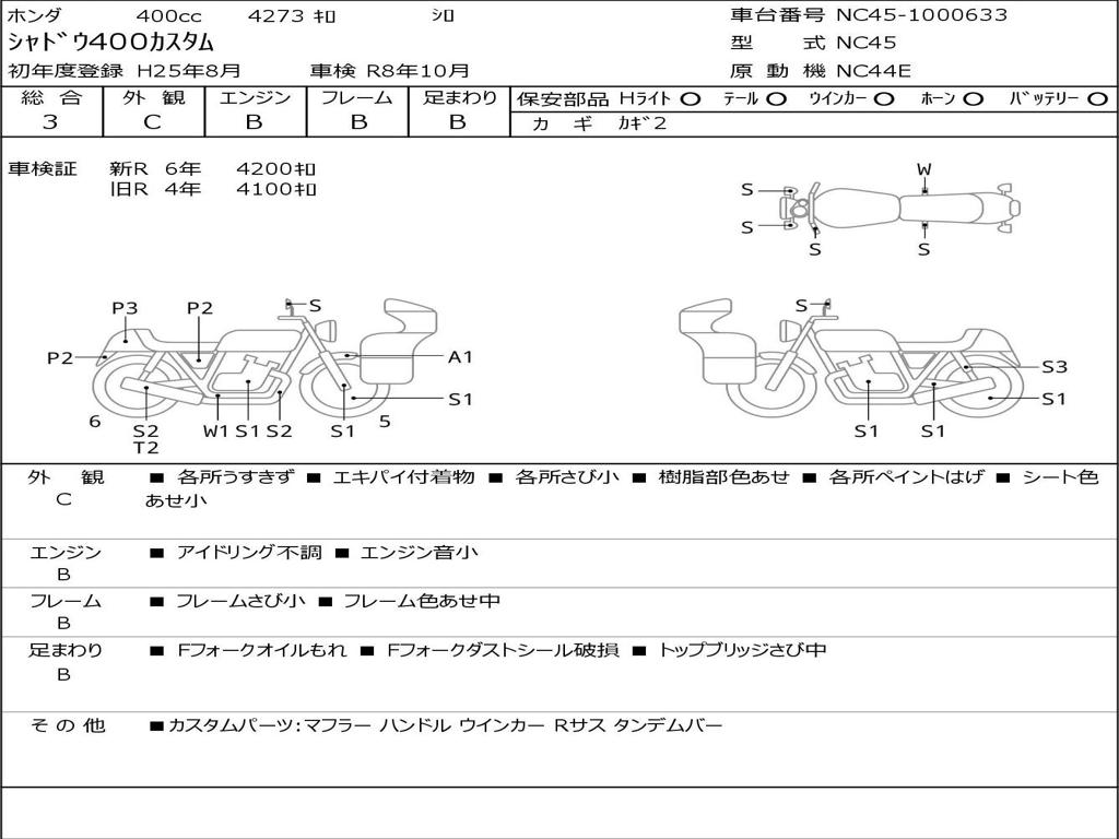 | Номер рамы / VIN | NC45-1000633 |