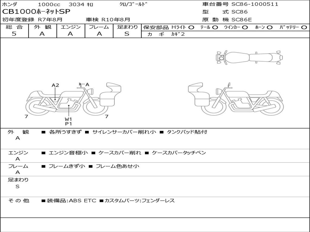| Номер рамы / VIN | SC86-1000511 |