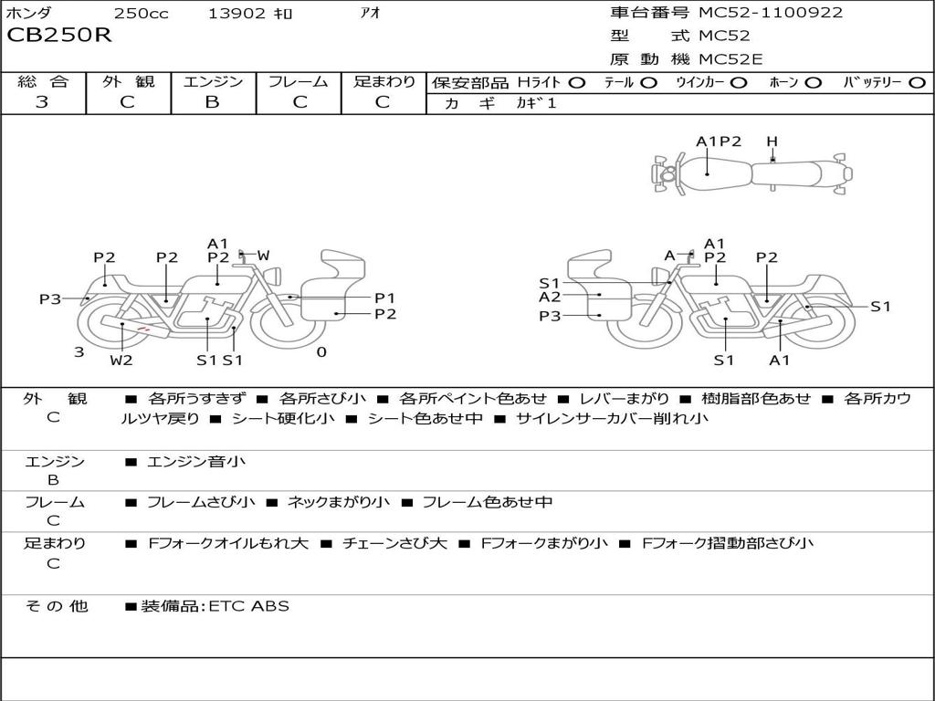 | Номер рамы / VIN | MC52-1100922 |