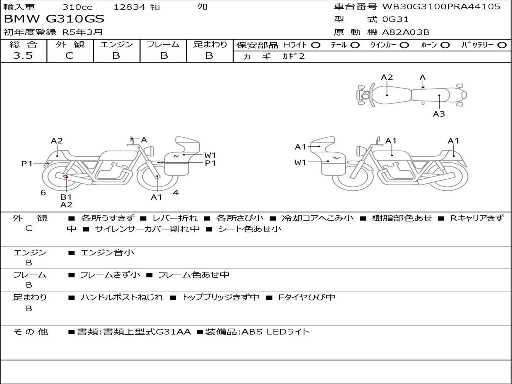 | Номер рамы / VIN | WB30G3100PRA44105 |