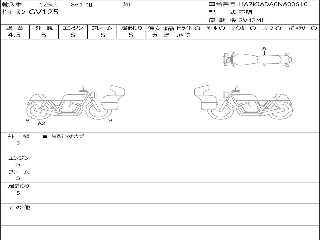 | Номер рамы / VIN | HA7KJADA6NA006101 |