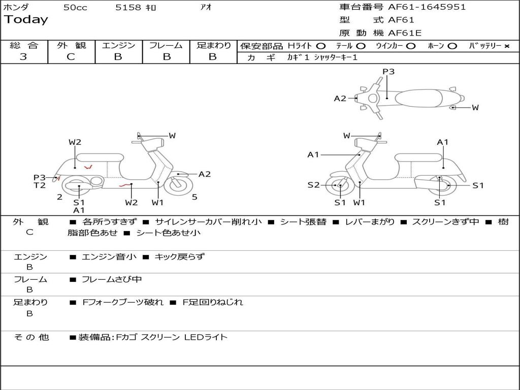 | Номер рамы / VIN | AF61-1645951 |