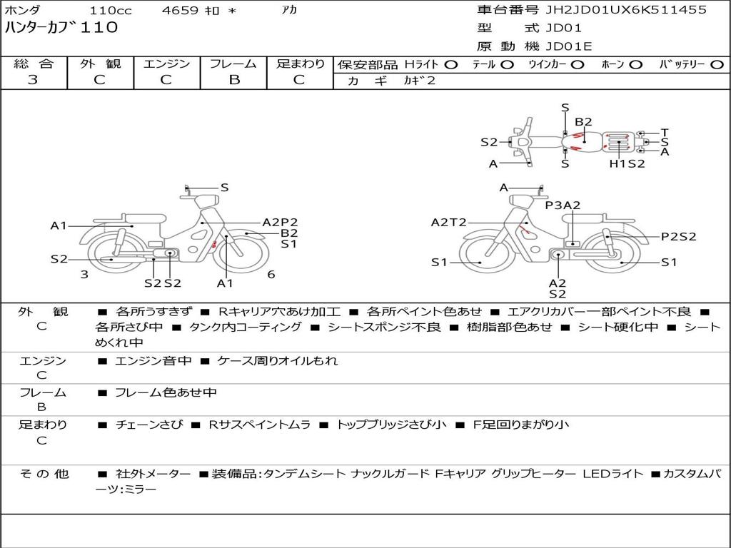 | Номер рамы / VIN | JH2JD01UX6K511455 |