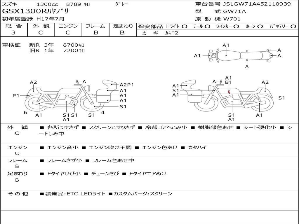 | Номер рамы / VIN | JS1GW71A452110939 |