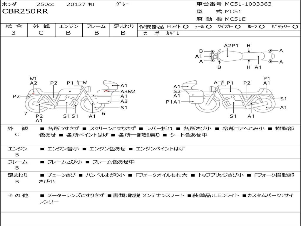 | Номер рамы / VIN | MC51-1003363 |