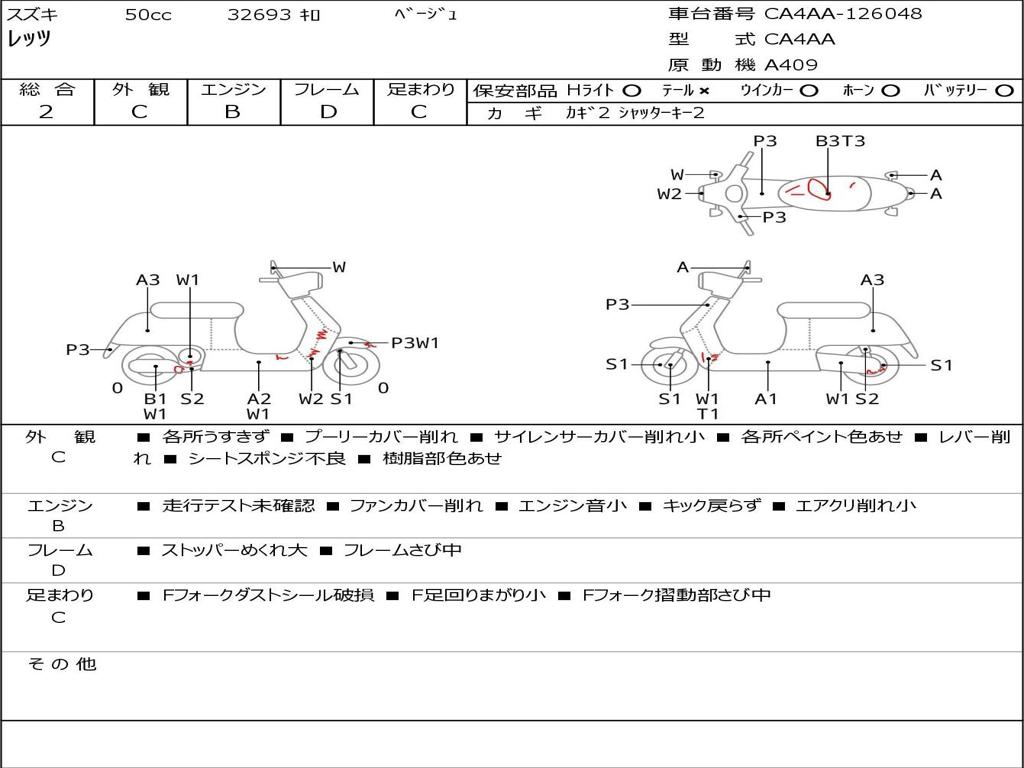 | Номер рамы / VIN | CA4AA-126048 |