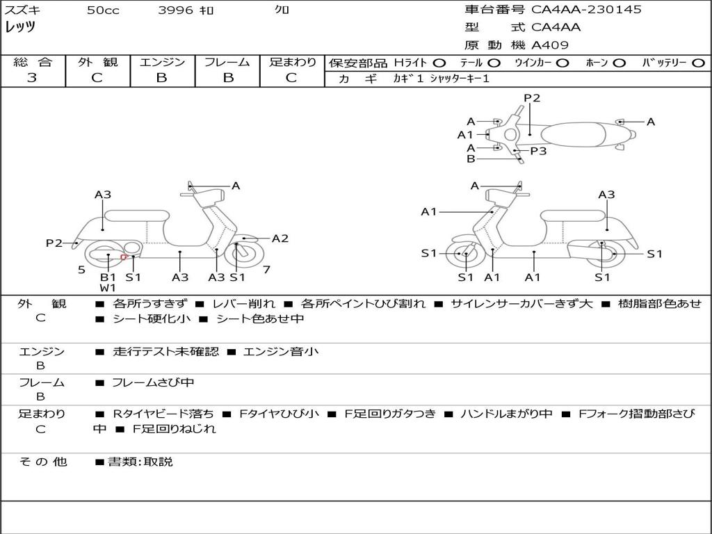 | Номер рамы / VIN | CA4AA-230145 |
