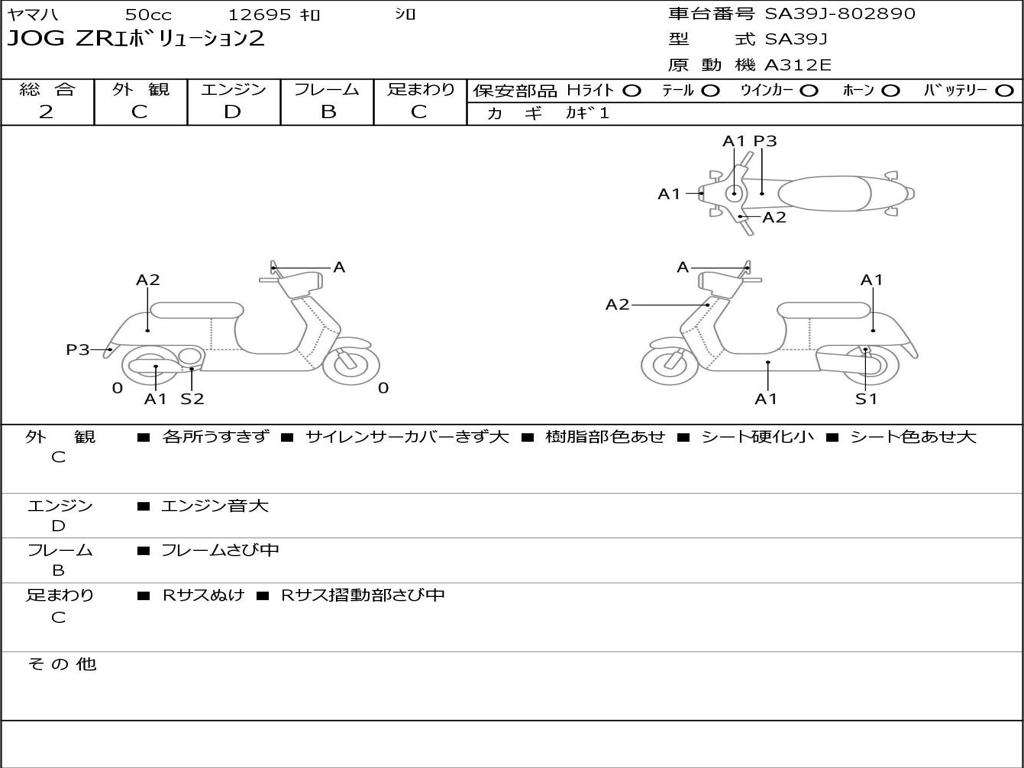 | Номер рамы / VIN | SA39J-802890 |