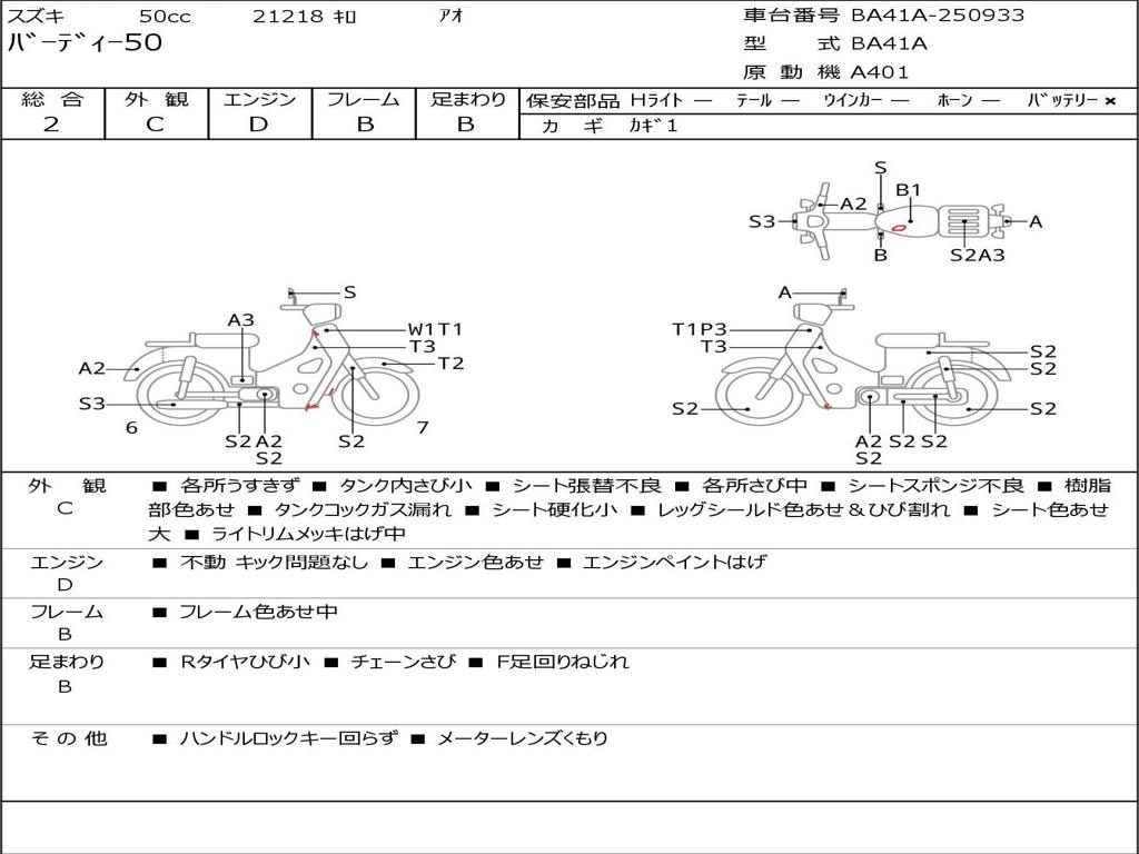 | Номер рамы / VIN | BA41A-250933 |