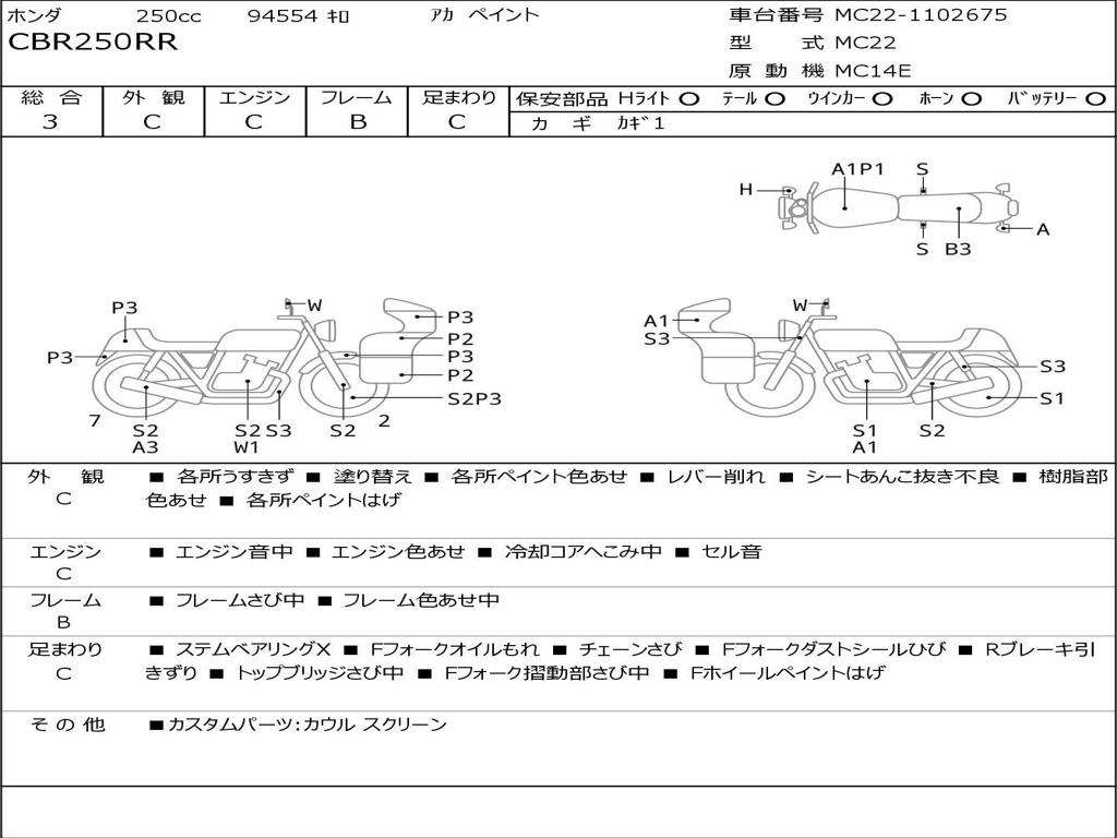 | Номер рамы / VIN | MC22-1102675 |