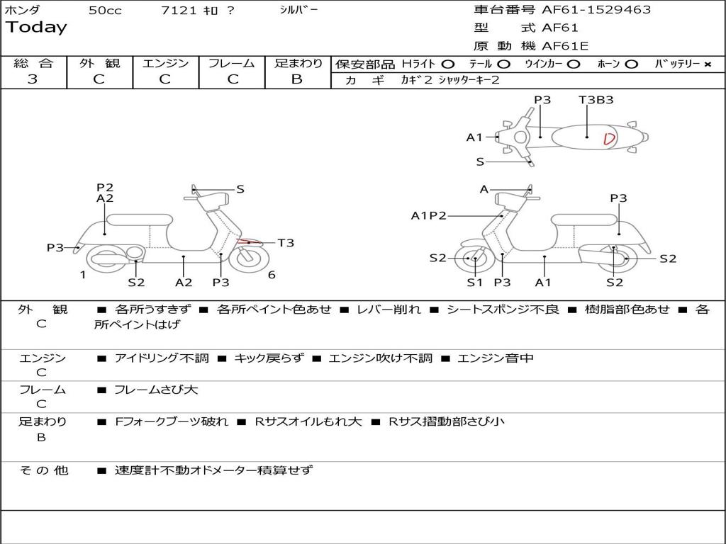 | Номер рамы / VIN | AF61-1529463 |