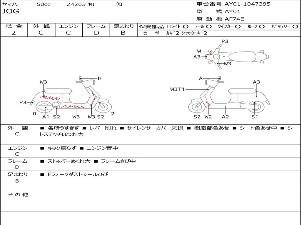 | Номер рамы / VIN | AY01-1047385 |