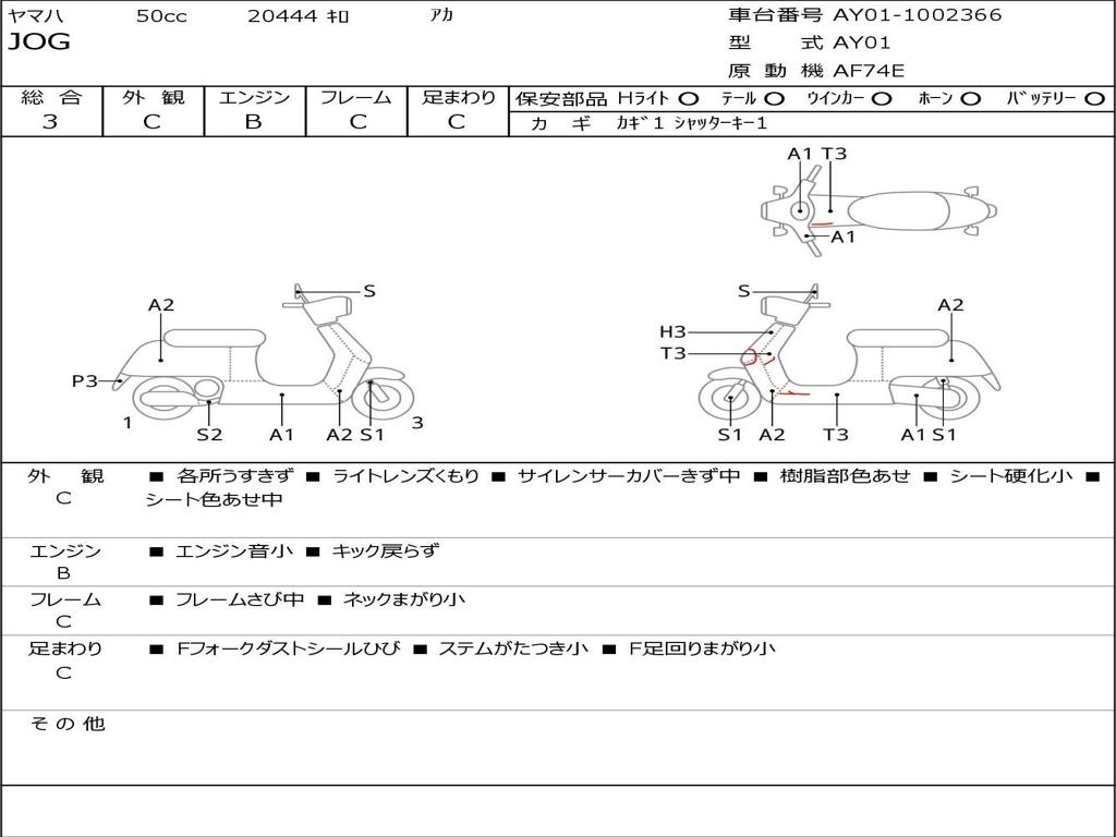 | Номер рамы / VIN | AY01-1002366 |