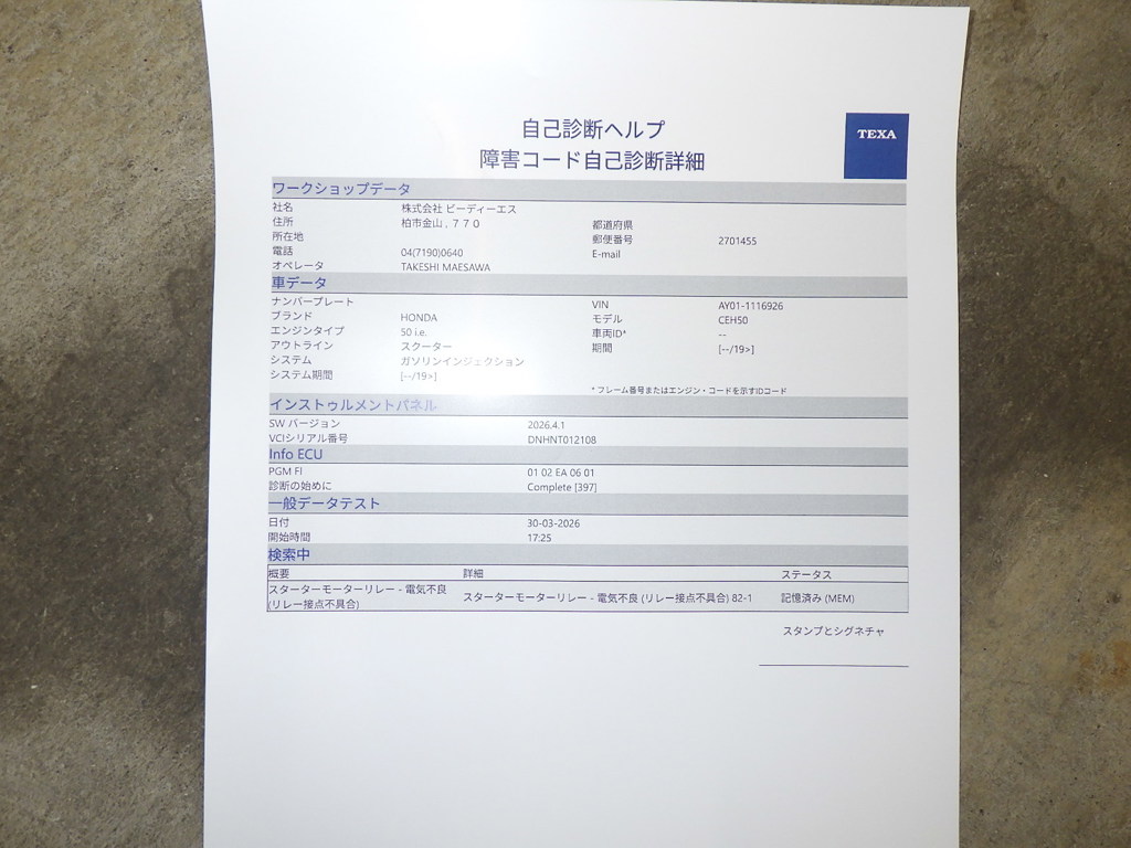 | Номер рамы / VIN | AY01-1116926 |