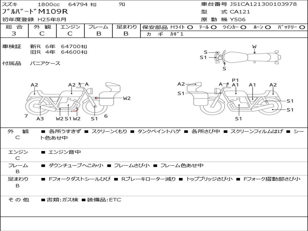 | Номер рамы / VIN | JS1CA121300103978 |