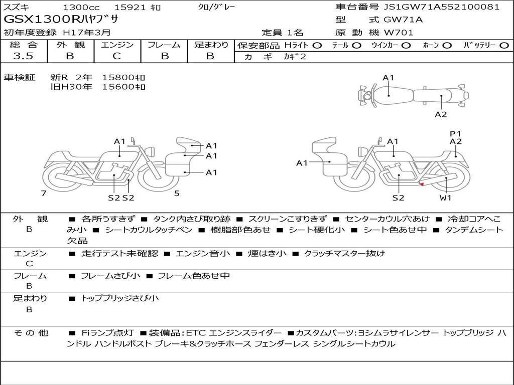 | Номер рамы / VIN | JS1GW71A552100081 |