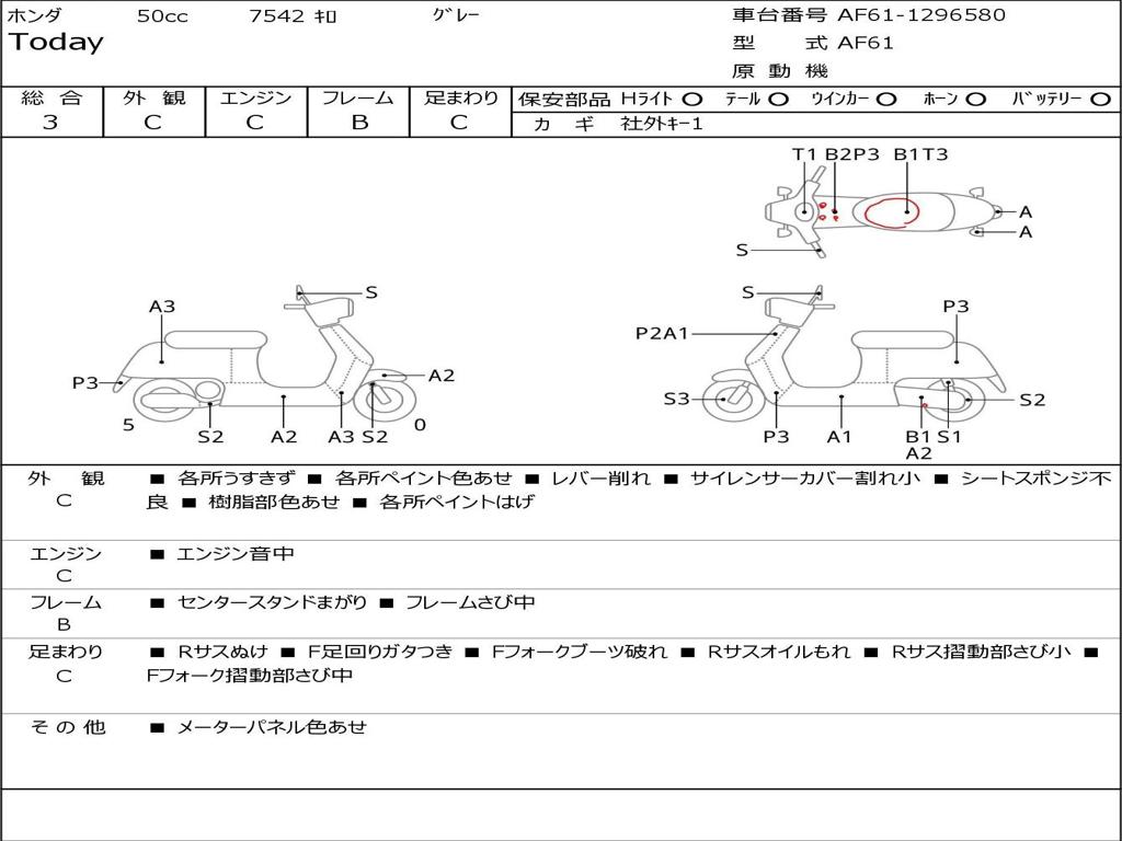 | Номер рамы / VIN | AF61-1296580 |