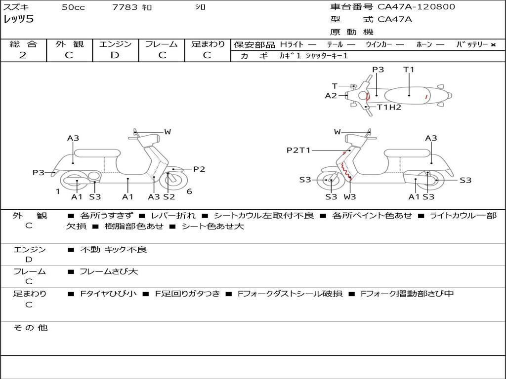 | Номер рамы / VIN | CA47A-120800 |