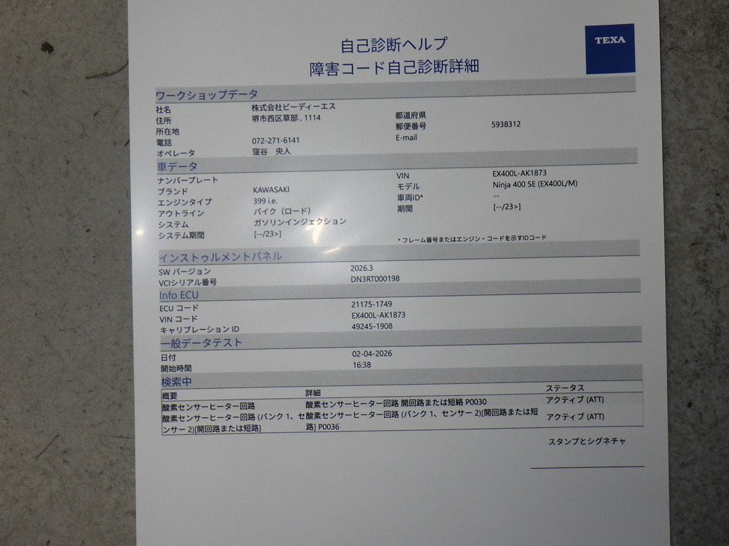 | Номер рамы / VIN | EX400L-AK1873 |