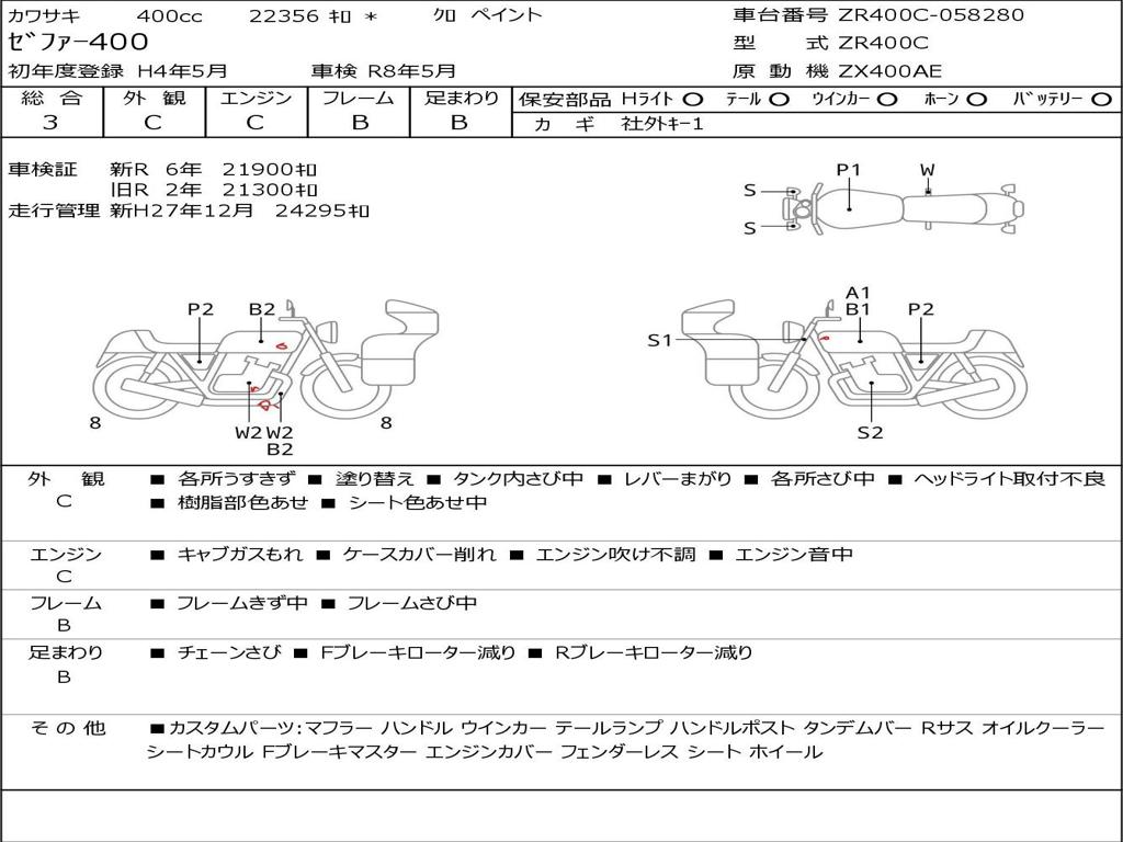 | Номер рамы / VIN | ZR400C-058280 |