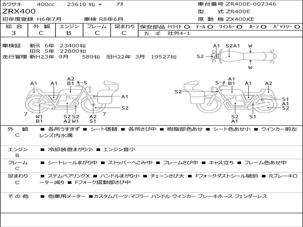 | Номер рамы / VIN | ZR400E-007346 |