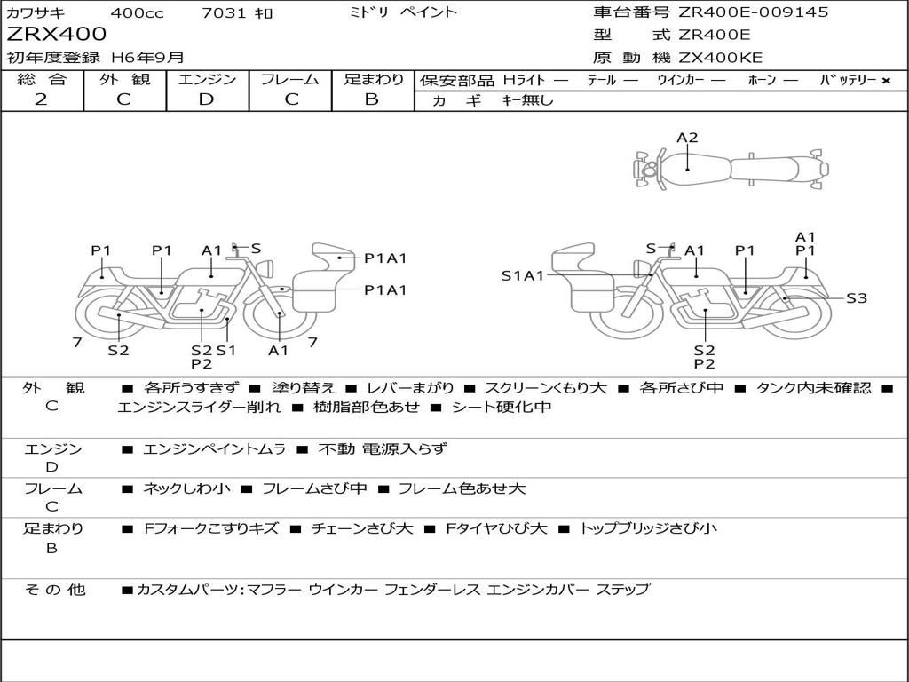| Номер рамы / VIN | ZR400E-009145 |