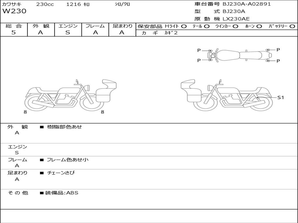 | Номер рамы / VIN | BJ230A-A02891 |