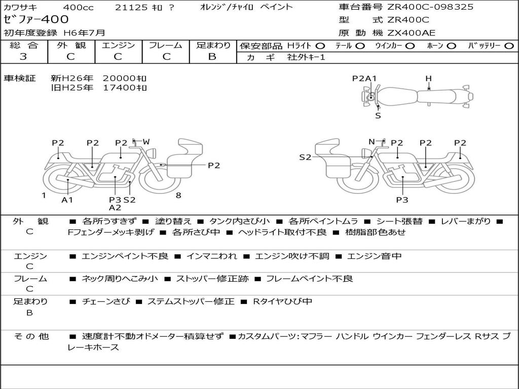 | Номер рамы / VIN | ZR400C-098325 |