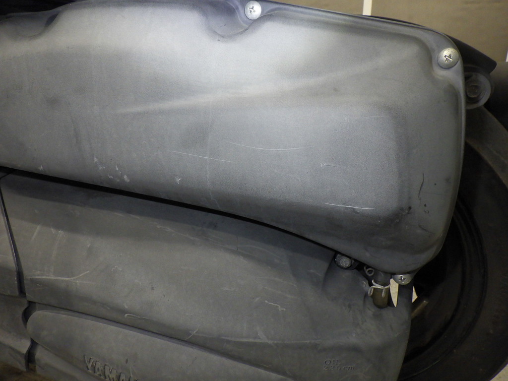 | снизу | царапины <много>, частичная подкраска, трещины |