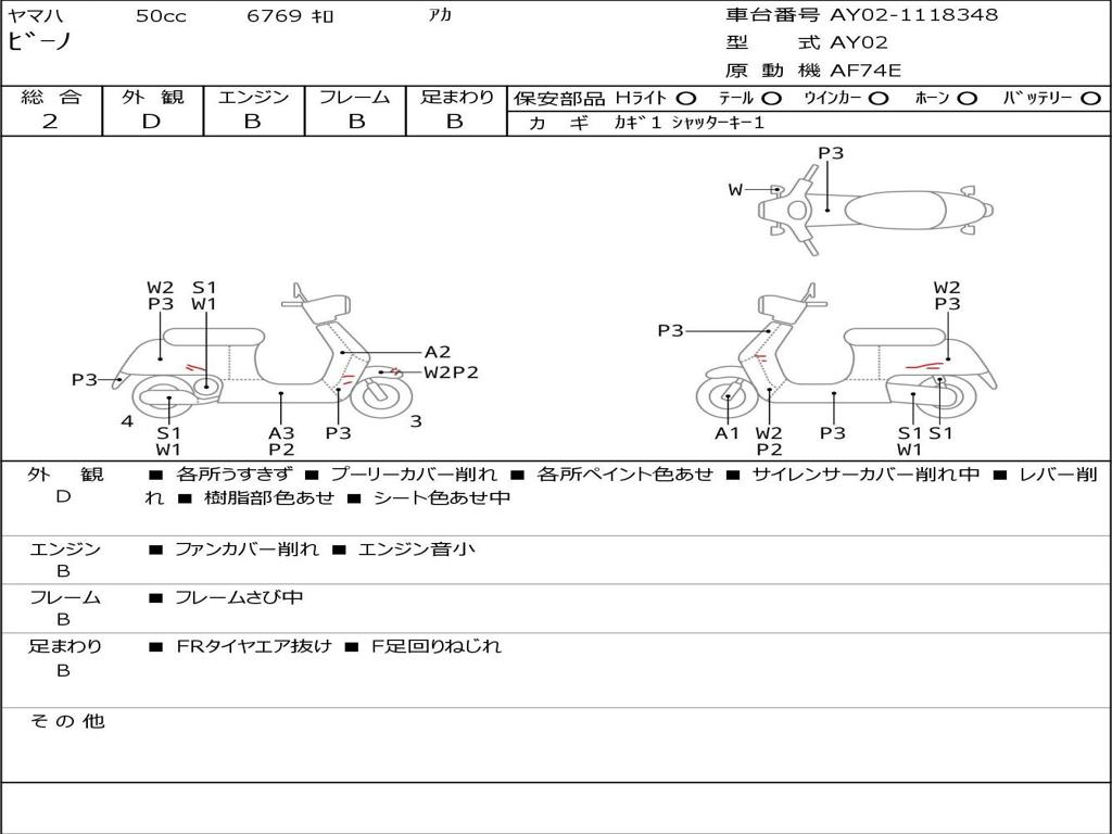 | Номер рамы / VIN | AY02-1118348 |